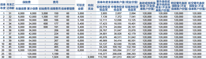 保单账户值结算:给付身故或残疾保险金时,结算保单账户值,一并给付受益人 意外身故或意外残疾保险金:12万(除给付第一、二项外)