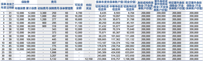 特别奖金:投保人按时交纳保险费,领取满期保险金时,返还1.5倍累计初始费用,共计12,150元