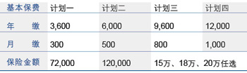 不同组合缴费和对应保额